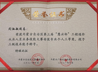 我司闫淑敏获得《Leyu Sports自治区第三届“慧云杯”工程造价从业人员业务技能大赛》个…